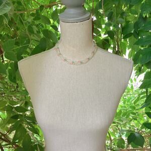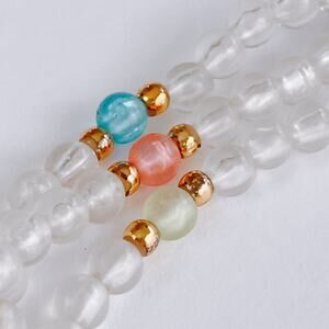 Soft pastels and translucent beads blend into a summery, airy necklace that echoes mid-century charm with a playful palette and feminine touch.