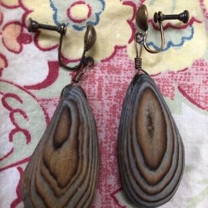 VTG 1960s Stick People Drift Wood Dangle Screw Back Earrings