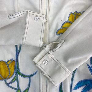 VTG 1960s World Knits White Blue Floral Print Button Front Jacket Womens Size 10