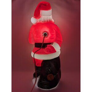 Get festive with this vintage 1969 Empire Santa Claus Lighted Blow Mold! Perfect for both indoor and outdoor use, this medium-sized piece features Santa carrying a sack and a bell. Made in the USA with durable plastic, it's a great addition to your porch or lawn decorations.