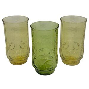 VTG 1970 Anchor Hocking Heritage Hill Amber Green Glasses MCM Set of 3 | 5.5"