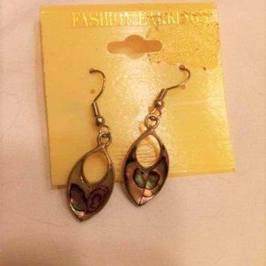 VINTAGE NEW/OLD STOCK 1970'S ALPACA MEXICO HANGING PEIRCED ABALONE & SILVER TONE METAL EARRINGS