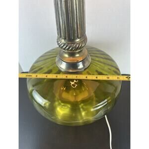 VTG 1970'S Mid Century Hollywood Regency Green Optic Glass Table Lamp Tested