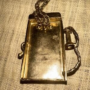 This sassy little telephone necklace is ready to hear all your gossip. It is in very nice condition. Please keep in mind. This is from the 70s. I’ve only found one or two necklaces similar to this and my price is so far the cheapest I want to find my jewelry good homes and I hope that you will consider this necklace. It is so cute. I will definitely be a talking point when you go out.