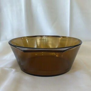 VTG 1970s Arcopal France Smokey Yellow Glass Round Bakeware Serving Dish Handles