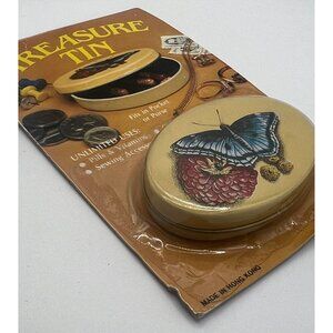VTG 1970s Butterfly Small Treasure Tin Pill Holder Hair Pins Coin Holder NOS