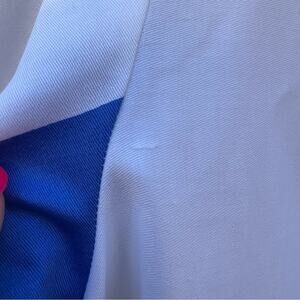 VTG 1970's Catherine Ogust for Penthouse Gallery blue white gold abstract striped color block cotton shirtdress.
