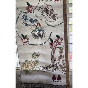 VTG 1970’s Cloth Kids Growth Chart Handmade Ruler Side Animals Decor 37x10 READ