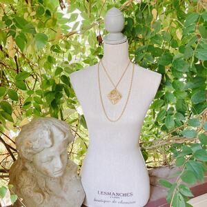 VTG 1970s Gold Tone Modernist Pendant Necklace Long Rope Chain 48"