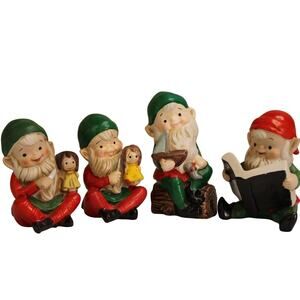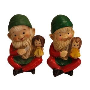This excellent condition 4-piece set includes 3 Gnomes from the Original Homco Collection, PLUS one Handmade gnome that compliments the gnome holding the doll.