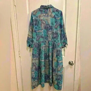 VTG 1970s Lady Carol Petites of New York Paisley Dress Size 14. Collared, button top and sleeves, pleated skirt. Length 43.5 in, p2p 26in, sleeves 22in. Missing button on sleeve, pictured otherwise perfect condition