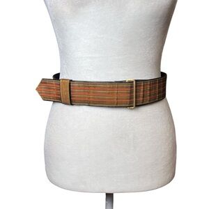 Unique retro vintage 1970s-1980s unisex leather backed belt with woven canvas stitching on front waist belt/statement belt