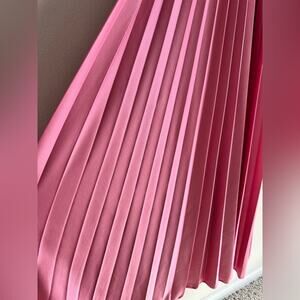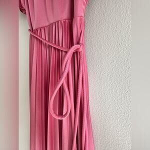 VTG 1970s Pink Off-Shoulder Pleated Maxi Dress Flutter Sleeve Goddess Gown Small