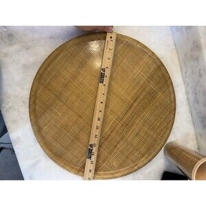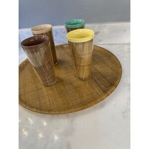 VTG 1970s Raffia Ware Burlap LOT 4 Tumbler Cups And 17 In Platter