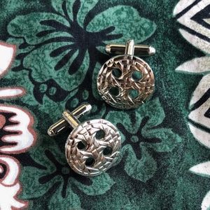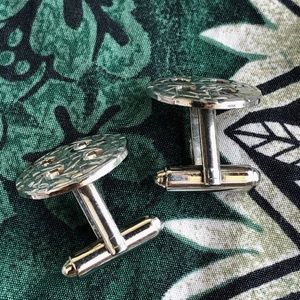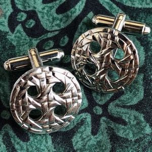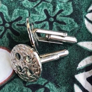 VTG 1970s Silvertone Button Cufflinks Basket Weave Design