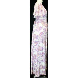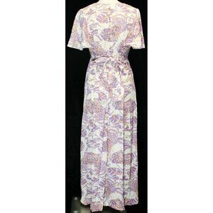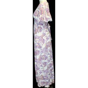 VTG 1970s Womens Maxi Dress Handmade Polyester Purple White Empire Waist