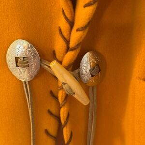 Orange vintage 1970s western-inspired jacket with leather and silver bolo clasp