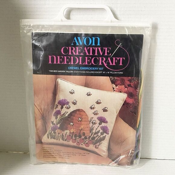Vintage 1972 Avon Creative Needle Craft Crewel Embroidery Pillow Kit "The Bee Garden"