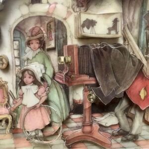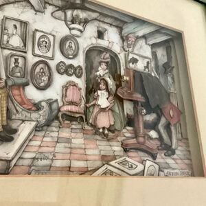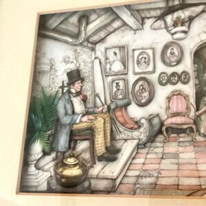 This gorgeous 3D artwork was done by Anton Pick a dutch artist who lived from 1895 to 1987. This picture features immaculate detail and dimension as different pieces of the picture are heightened at different levels resulting in an eye-catching 3D effect. Certain pieces of the picture appear to have a glaze on them which is starting to show a little bit of crazing but it is hardly noticeable and understandable based on the age of the artwork. This piece is framed however the frame has a couple of dings and the glass is not properly fitted and does slide around slightly, there is also a small chip in the glass as shown in the photos. Despite these imperfections, this is still a beautiful vintage piece.