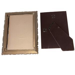 VTG 1973 Gold Bronze Photo Frame Resin Faux Carved Wood Ornate Scroll 8.25x6.25