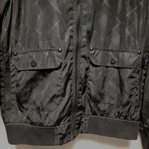 VINTAGE 1975 JACK&JONES MENS BLACK HOODED BOMBER JACKET SIZE L ZIP CLOSURE MOCK NECK LONG SLEEVE RIBBED CUFFS. LIGHTWEIGHT MATERIAL. ZIPPED POCKETS. SNAP ON HOOD. BLACK CHECK PATTERN and LOGO ACCENTS. GREAT PRELOVED CONDITION. SHOULDER 19" PIT 22" SLEEVE 26" LENGTH 25"