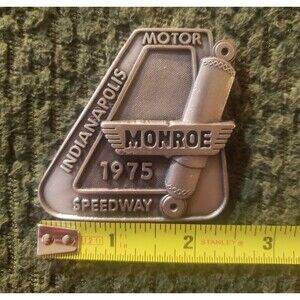 Up for sale is one (1) Vintage 1975 Monroe Shocks & Struts Pewter Belt Buckle for the Indianapolis 500.