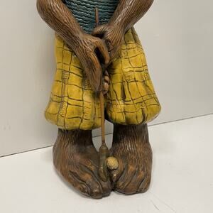 The VTG 1976 Progressive Art Products 15” Chimpanzee Chimp statue is a unique and colorful piece depicting a chimpanzee in a playful golfing pose. Made of chalk and painted in vibrant colors, this figurine captures the whimsical charm of the 1970s era. With its humorous subject and distinctive style, this collectible item is a standout piece for any animal-themed decor collection.
