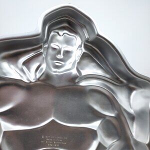 Superman cake pan, Wilton cake pan, superhero baking mold, DC Comics cake mold, vintage superhero pan, 1977 Wilton Superman, Superman birthday cake, comic book kitchenware, Superman collector, Superman kitchen décor, vintage Wilton pan, superhero party supply, Superman memorabilia, superhero cake mold, Superman bakeware, Superman wall décor, Superman man cave décor, DC superhero cake pan, Wilton Enterprises Superman, vintage comic cake mold