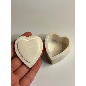 Charming vintage handmade soapstone heart trinket box featuring delicate mother of pearl inlay in pietra dura style — perfect for jewelry, keepsakes, or décor.