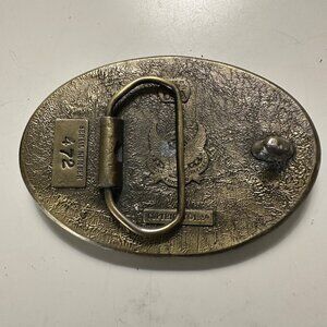 VTG 1980 The Great American Buckle Co #472 Brass Deer 3.5 x 2.5” Oval Buckle