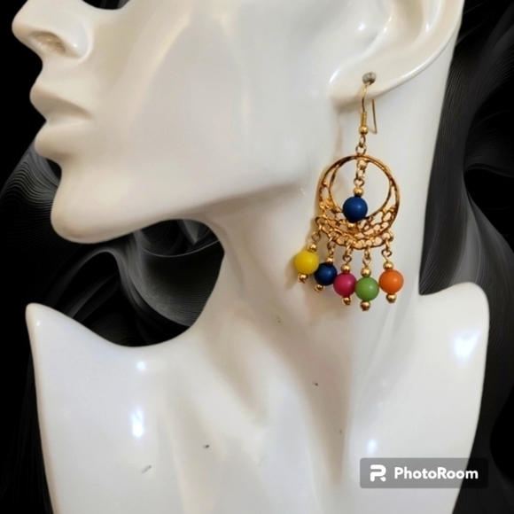 VTG 1980s BEVERLY HILLS BLUES Pastel Rainbow Chandalier Gasparilla Earrings