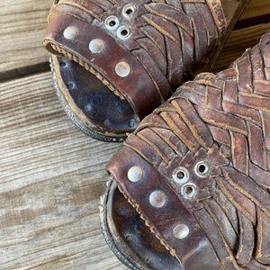 VTG 1980s Brown Leather Sandals Huaraches Mens US11