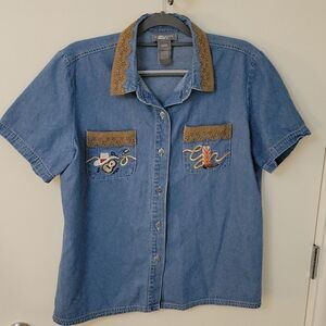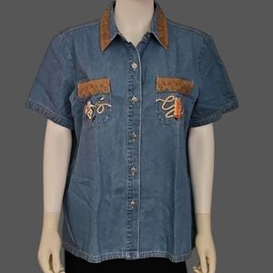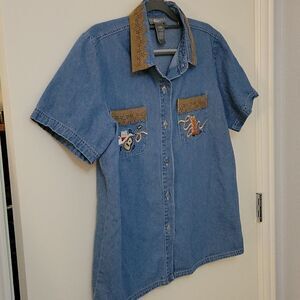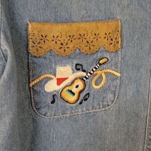 VTG 1980s CAPACITY Country Music Chambray Button Down Western Novelty Shirt