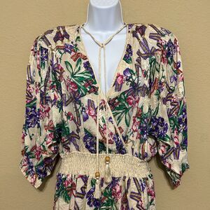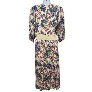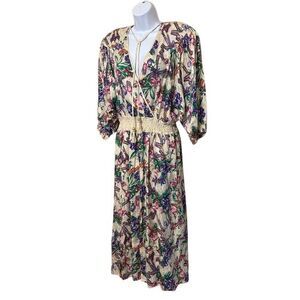 VTG 1980s Diane Fres 100% Silk Cream Floral Print Dress Size Medium/Large Artsy