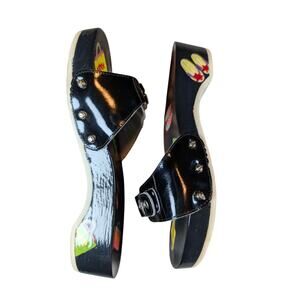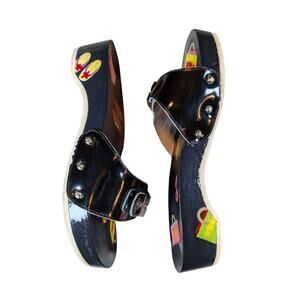VTG 1980s Dr. Scholl’s Original Collection Clog Sandal Black Patent Hand painted
