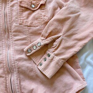 VTG 1980s Jean Jacket Women Small Corduroy Collar Barn Coat Coral Orange Y2K 90s