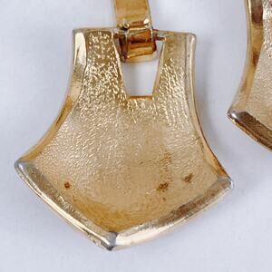 VTG 1980s Marbled Pink Enamel Geometric Statement Earrings Gold Tone Hinged
