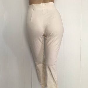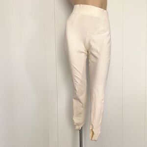 Stirrup Pants. High waisted. Off white. Super stretchy. Label: Saratoga Sport. Excellent vintage condition, dead-stock with label which we removed so as to clean 'storage' from garment. See pics. Sold as is.