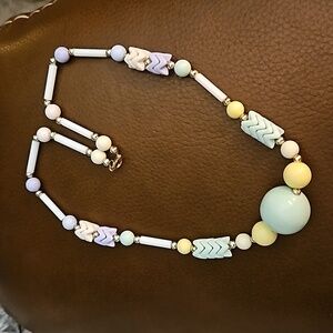 VTG 1980s Pastel Acrylic Chevron Beaded Necklace