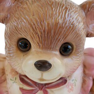 VTG 1980's Teddy Bear Cookie Jar Canister Kitchen Cottagecore Glass Eyes Japan