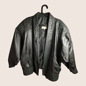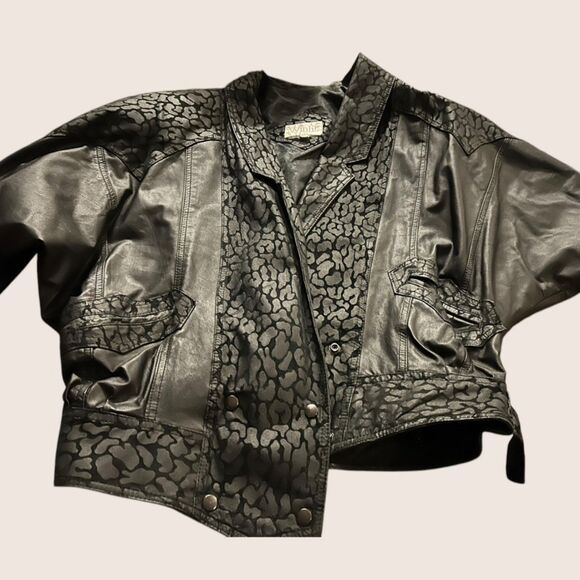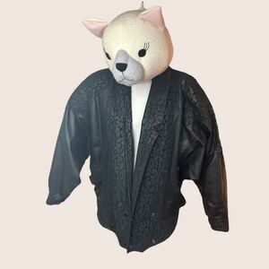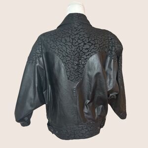 🖤 VTG 1980s WINLOCK GENUINE LEATHER JACKET COAT LEOPARD ANIMAL CONTRAST MEDIUM