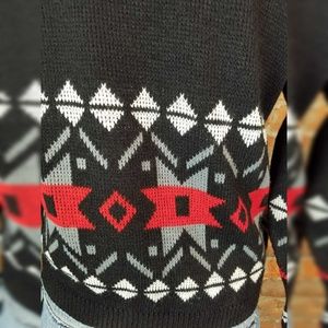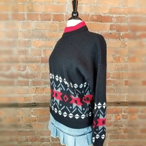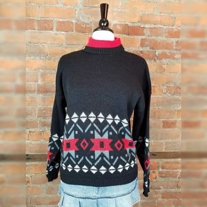 VTG 1980s Women's Teasers Sweater Black w/RedGrayWhite Geometric Print Sz M