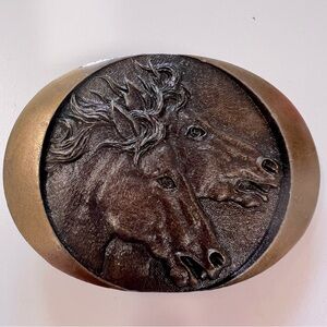 VTG 1982 INDIANA METAL CRAFT HORSE HEADS EQUESTRIAN WESTERN BRASS BELT BUCKLE
