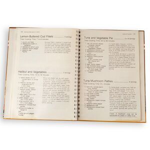 Here is the 1982 edition of the "Kenmore Microwave Cookery" cookbook. This spiral-bound version is designed to lay flat on the counter for easy reference while cooking. It's a true time capsule from the golden age of microwave cooking, filled with over 185 recipes and vibrant, full-color 80s food photography.