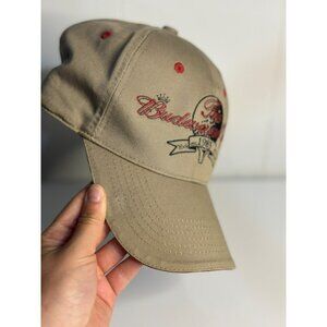 VTG 1983 Budweiser Open York PA Embroidered Baseball Cap Tan Red Hook Loop Back