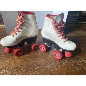 The product is a pair of vintage 1983 Care Bears roller skates by Brookfield, made by American Greetings Corporation in Taiwan. These roller skates are size 10J and suitable for girls. They are a nostalgic collectible item for fans of Care Bears and vintage roller skates, offering a fun and unique way for girls to enjoy roller skating. With their retro design and brand association, these roller skates are sure to appeal to both collectors and skate enthusiasts alike.