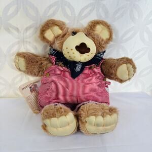 VTG 1984 Furskins 22" Dudley Bear Red Striped Overalls Bandana Xavier Roberts - Missing Shoes, tag still attached, see all pictures!