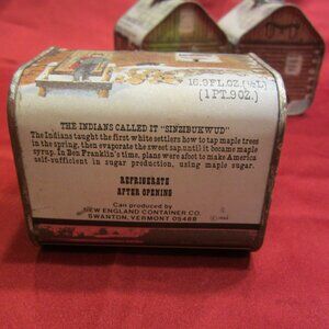 VTG 1984 TIN LOG CABIN VERMONT MAPLE SYRUP EMPTY 16.9 FL OZ CONTAINER EACH