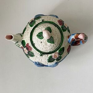 VTG 1985 Haldon Japanese Majolica Ceramic Ribbon Basketweave Teapot 3 Piece Set