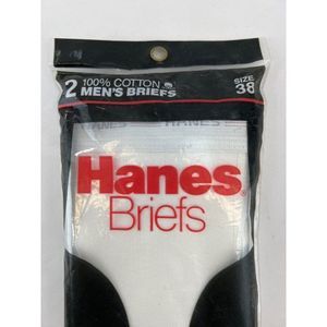 VTG 1987 HANES 2 Pack Men’s White Briefs Underwear Size 38 Red Line Waistband